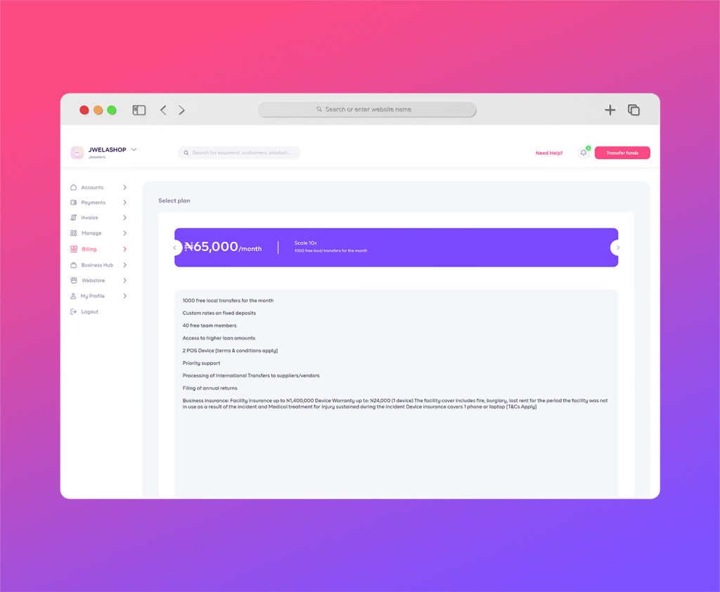 - Navigate to ‘Billing’ on the navigation bar on the left
